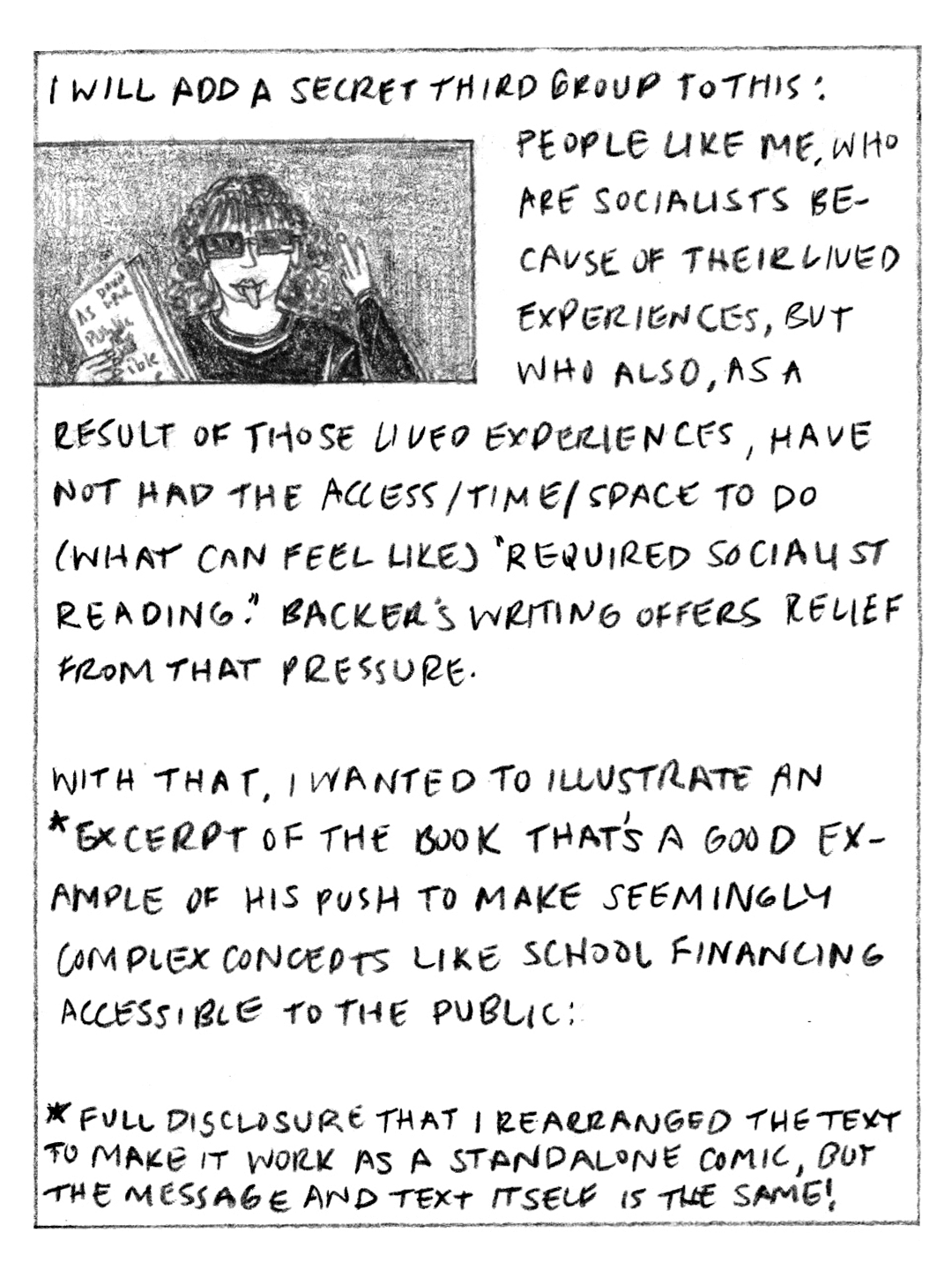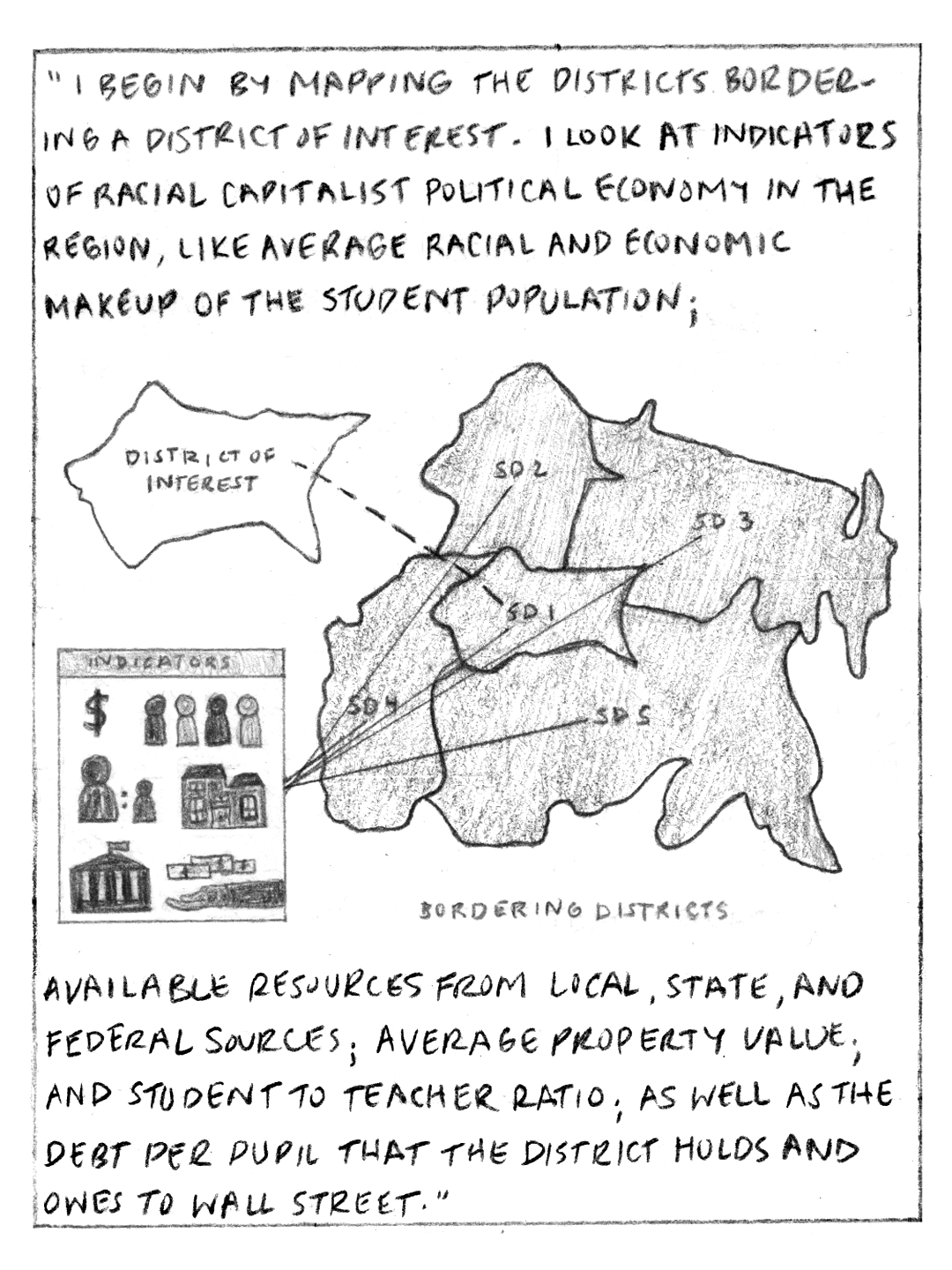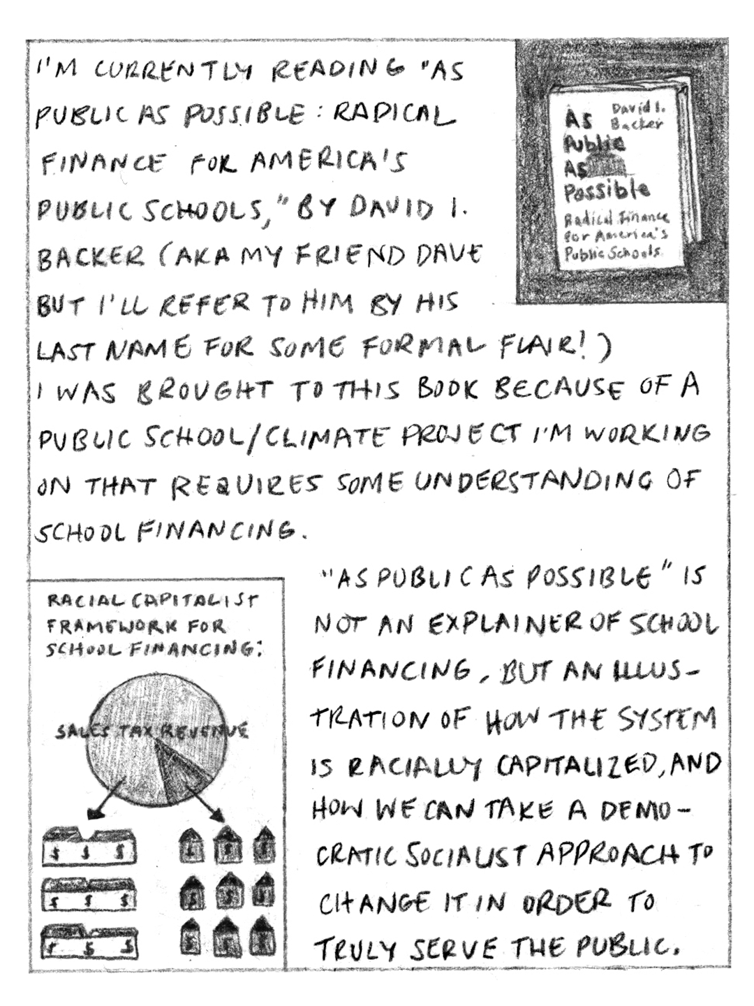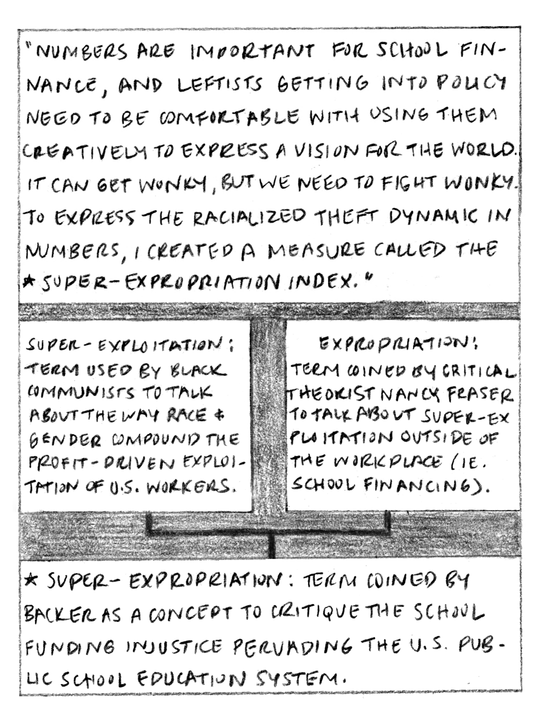 I illustrated an excerpt about a measure called the super-expropriation index from David I. Backer’s new book, “As Public As Possible: Radical Finance For America’s Public Schools.” The index is a method we can use to quantify racialized theft in school finance across school districts in the US. Backer’s book provides a leftist perspective on how to rebuild school finance policy to actually serve the public. Read As Public As Possible now! Link to order book HERE.